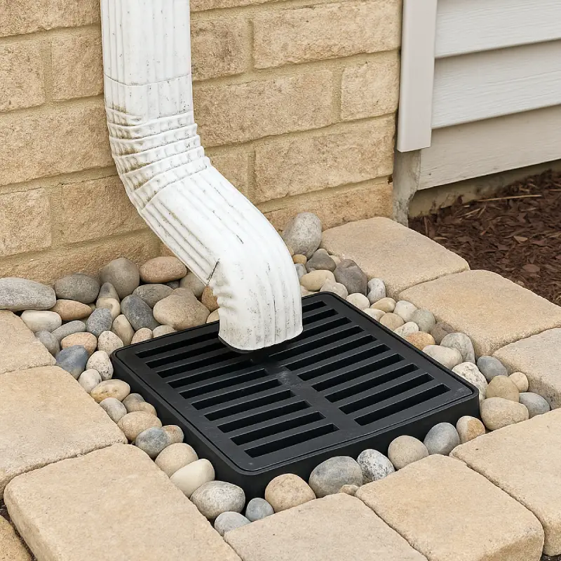Installed in low-lying areas to collect excess water before it can pool, then connect to underground piping for proper drainage.